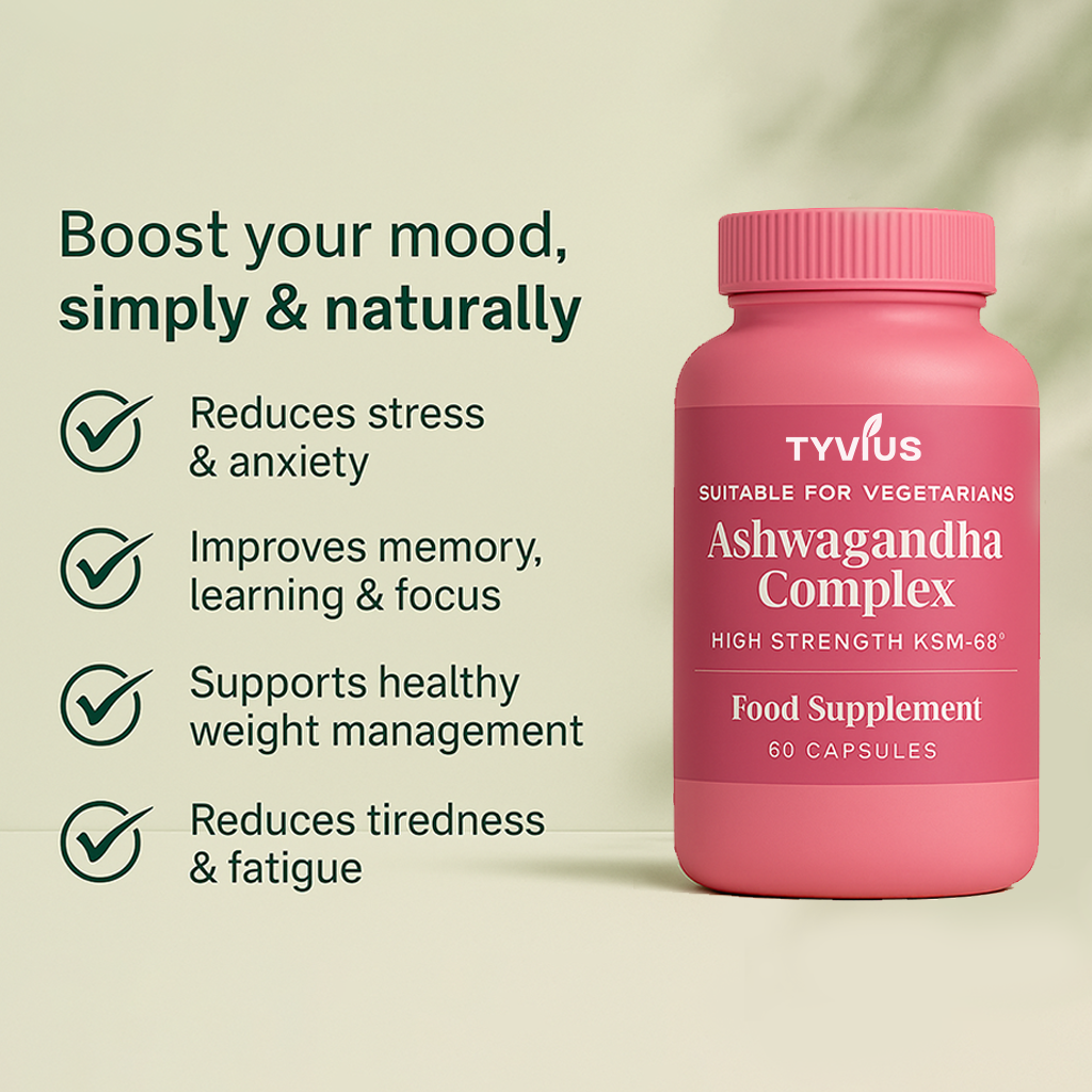 Our maximum strength Ashwagandha Complex contains 100% natural and highly absorbable KSM-66 Ashwagandha, essential B Vitamins, Guarana Extract, Saffron Extract, L-Tryptophan and Passion Flower to reduce fatigue, encourage sleep, boost energy levels and help the body to deal with stress.
